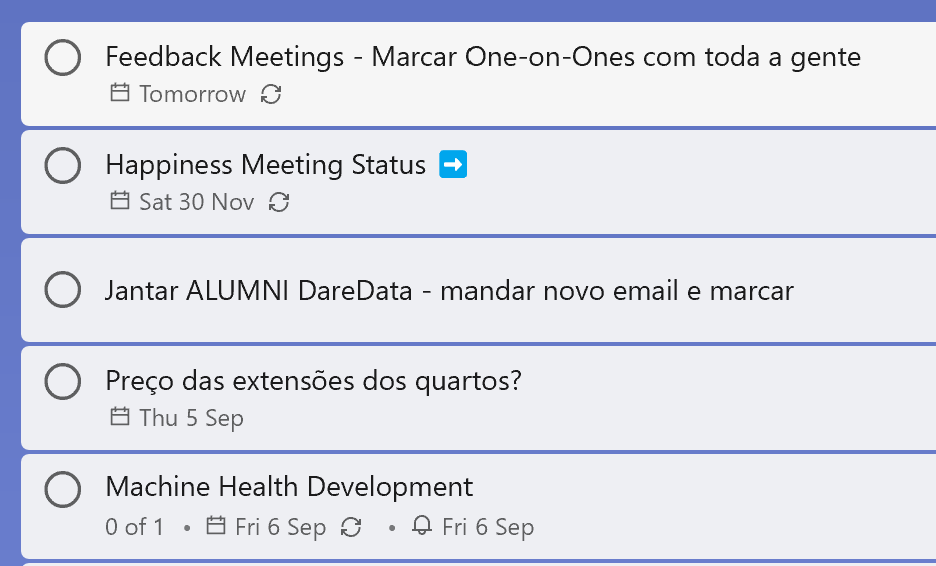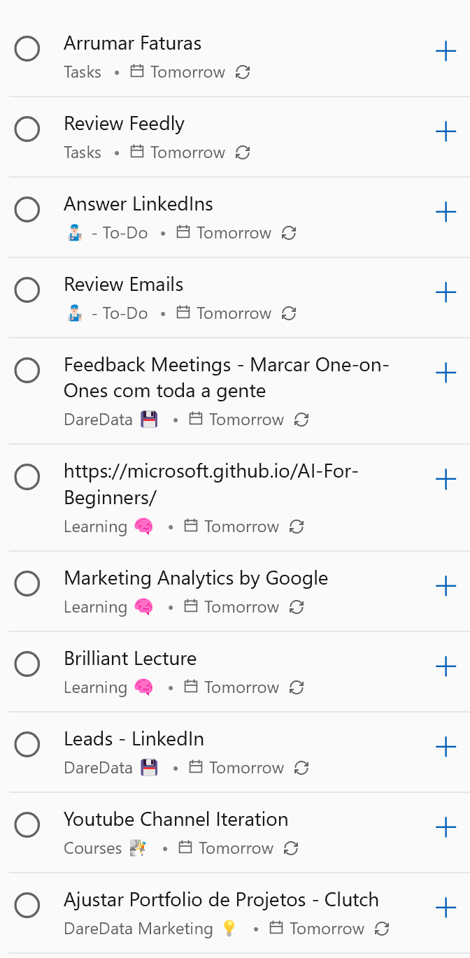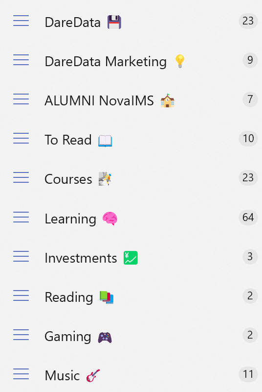 I need to have categories. Some tasks are related to DareData, others to NOVA IMS ALUMNI, other for personal projects, etc.